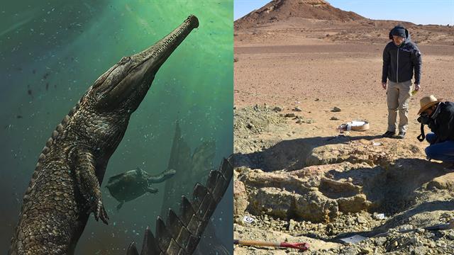The biggest sea-dwelling crocodile ever found has turned up in the Tunisian desert. The whopper of a prehistoric predator grew to over 30 feet long (nearly ten meters) and weighed three tons.